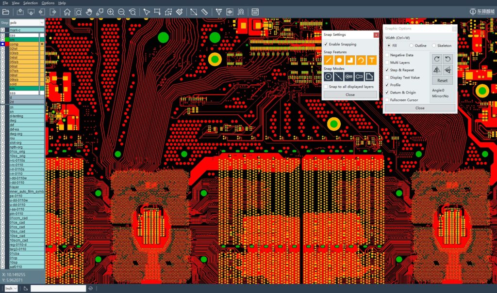 OpenCAM是由無錫東領智能科技股份有限公司開發的一款輕量級PCB CAM圖形查看器。基于C++開發,具有超高的圖形顯示效率,完全支持ODB++8.1格式。